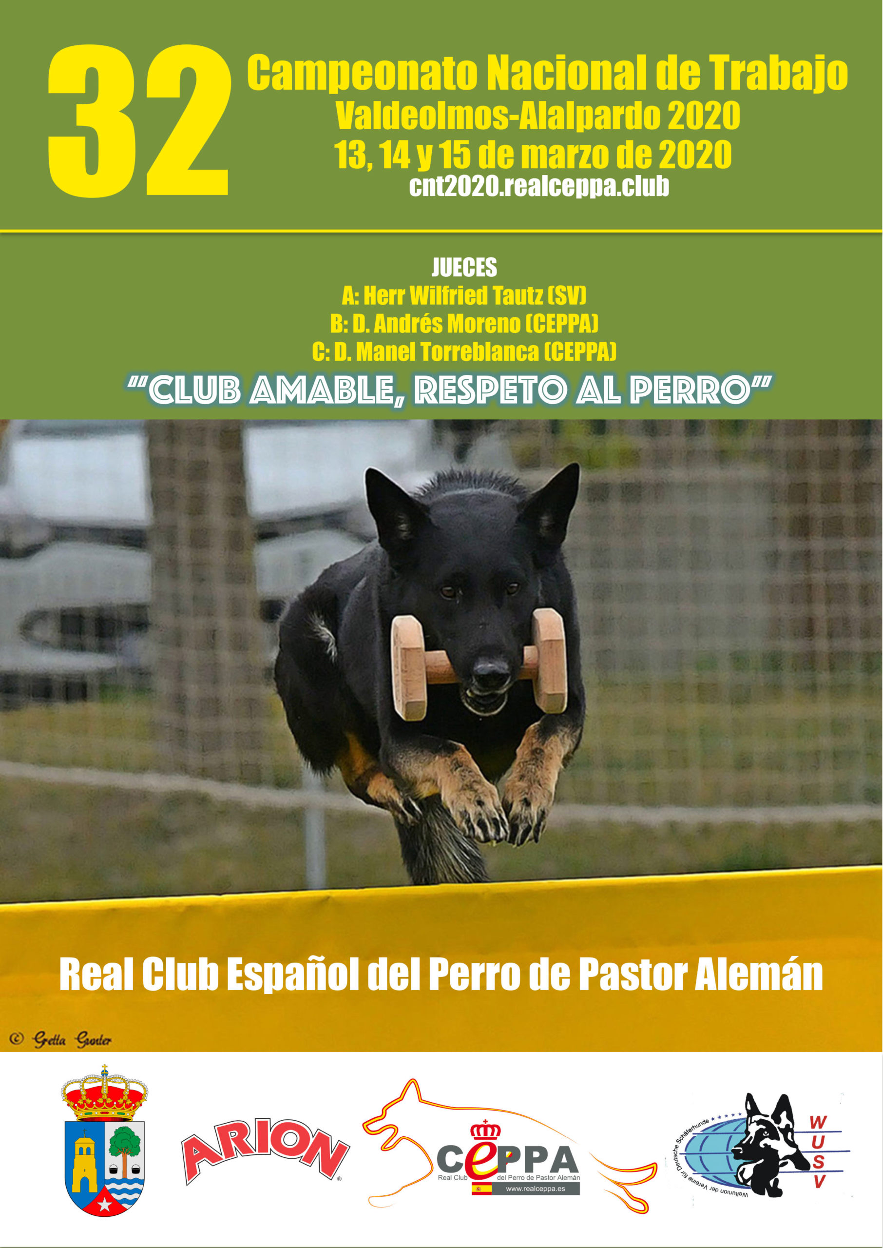 El Campeonato Nacional de Trabajo (CNT) del Real CEPPA es clasificatorio para el Campeonato del Mundo de adiestramiento deportivo con perro de pastor alemán de la Unión Mundial de Clubes (W.U.S.V.).
